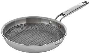 A serpenyő nemesacél, Greblon tapadásmentes bevonatú.