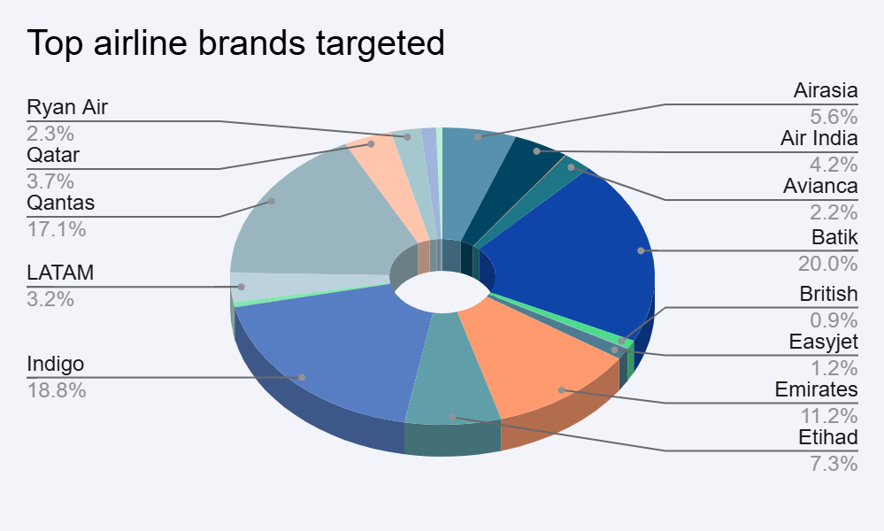 A leginkább célba vett légitársaságok